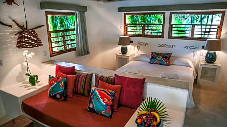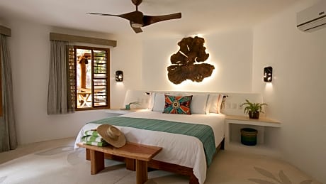 195 rooms and suites with a wide terrace, wooden table, chairs, loungers, and hammocks. Organic, Mayan-inspired premium bath amenities. Individual air conditioning units and ceiling fans. In-room safe (laptop compatible). All rooms are Non-smoking rooms.