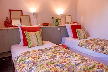 Decorated in bright colors, the accommodations has satellite TV and a work desk.