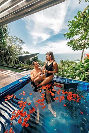Hotel Makanda by the Sea, a luxurious adults-only retreat nestled in the lush tropical paradise of Manuel Antonio, Costa Rica. Our hotel offers the perfect blend of serenity and sophistication, designed exclusively for adults seeking a tranquil escape. Location Located just minutes from the pristine beaches of Manuel Antonio and surrounded by vibrant rainforest, Hotel Makanda by the Sea provides stunning ocean views and easy access to local attractions. Whether you're exploring the nearby national park or relaxing on the beach, our prime location ensures a memorable stay. Accommodations Our elegantly appointed rooms and villas are designed to offer the utmost comfort and privacy. Each accommodations features: - Spacious layouts with modern furnishings - Private balconies or terraces with breathtaking ocean or jungle views - Air conditioning and complimentary Wi-Fi - Luxurious bathrooms with rain showers and premium toiletries Amenities Indulge in our exceptional amenities designed to enhance your stay: - Makanda Pool lounge: Take a refreshing dip in our stunning infinity pool overlooking the Pacific Ocean. - Ocean Club Infinity Pool: Enjoy our second infinity pool with salt water for a unique and refreshing experience. - Private Beach: Relax and unwind on our secluded private beach. - Amazing Breakfast: Start your day with an amazing breakfast featuring a variety of delicious options, approx $30 per person - Arbol Restaurant: Savor gourmet cuisine crafted from fresh, local ingredients in a romantic, open-air setting. -Shanti Spa: Pamper yourself with a range of rejuvenating treatments at our on-site spa. - Fitness Center: Maintain your fitness routine in our state-of-the-art gym. - Concierge Services: Our dedicated team is here to assist with tour bookings, transportation, and any special requests. Why Choose Us? - Guided Tours: Discover the natural beauty of Manuel Antonio with our guided tours. - Water Sports: Enjoy a variety of water sports including snorkeling, kayaking, and paddleboarding. - Wildlife Watching: Experience the diverse wildlife of Costa Rica with our specialized tours. - Adventure Activities: Thrilling activities such as zip-lining and canopy tours are available for the adventurous spirit. - Honeymoon Packages: Celebrate your love with our exclusive honeymoon packages, featuring romantic dinners, couples' spa treatments, and private excursions. - Romantic Settings: Enjoy stunning sunset views, intimate dining experiences, and beautifully decorated rooms to make your honeymoon unforgettable. - Adults-Only: Enjoy a peaceful and sophisticated environment, perfect for couples and solo travelers. - Personalized Service: Our attentive staff is committed to making your stay unforgettable. - Eco-Friendly: We are dedicated to sustainable practices that protect our beautiful surroundings. Escape to Hotel Makanda by the Sea and discover the ultimate in luxury and tranquility. Book your stay today and experience the best of Manuel Antonio.