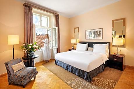Experience an abundance of unparalleled facilities and features at Mandarin Oriental, Prague. Maintain seamless communication using the complimentary Wi-Fi at hotel. Effortlessly arrange transportation to and from the airport using the hotel's airport transfer services. Discovering Prague becomes even more accessible through the taxi and car hire amenities provided at the hotel. Guests can avail parking facilities at the hotel.During your stay at this fantastic hotel, the attentive front desk personnel can provide you with a range of amenities such as concierge service, express check-in or check-out, luggage storage and safety deposit boxes.In search of city's top entertainment, seek assistance at the hotel's ticket service and tours for reservations. At the hotel, utilize the on-site dry cleaning service and laundry service to maintain your beloved travel attire fresh, allowing you to bring fewer clothes.Craving relaxation? Make the most of your stay at the Mandarin Oriental, Prague with convenient amenities like room service and daily housekeeping at your disposal.Kindly note that smoking is prohibited in the hotel to ensure fresher air for all visitors.For visitors wishing to smoke, designated smoking zones can be found. At Mandarin Oriental, Prague, every guestroom is provided with convenient amenities and fittings to ensure a comfortable stay. Elevate your experience at hotel with the knowledge that certain rooms are equipped with air conditioning, ensuring a more pleasant stay for you.At Mandarin Oriental, Prague, each visit offers an array of intriguing room configurations, featuring accommodations with separate living room and balcony or terrace, ensuring a distinct experience every time.Certain rooms boast in-room amusement features such as television and cable TV, offering guests an enjoyable stay.In select rooms within the hotel, a refrigerator, a coffee or tea maker and mini bar is available to cater to your requirements when desired.It is worth noting that certain guest bathrooms feature a hair dryer, toiletries and bathrobes for your convenience. Begin your day with a scrumptious on-site breakfast available each morning at Mandarin Oriental, Prague.At the hotel, an assortment of easily accessible and delicious meal choices are available to satisfy your appetite whenever it strikes. Enjoy an entertaining evening with your fellow travelers at the hotel's bar. During your stay at hotel, an array of engaging activities and amenities guarantees a delightful experience.Conclude your holiday perfectly with a visit to massage, salon, steam room, spa and sauna on your final days.Discover the fitness amenities at hotel to maintain your health and strength during your getaway.