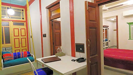 Offering a garden and a terrace, Mangaldas Ni Haveli II by The House of MG in Ahmedabad is close to Nehru Bridge and Manek Chowk. The property is around 3.6 miles from Gandhi Ashram, 4.3 miles from IIM, and 6.3 miles from Sardar Patel Stadium. Free Wifi, a 24-hour front desk, and an elevator are offered. At the bed and breakfast, units are equipped with air conditioning, a seating area, a flat-screen TV with satellite channels, a safety deposit box, and a private bathroom with a walk-in shower, slippers, and a hair dryer. Rooms are equipped with a kettle, while some have a balcony. At the bed and breakfast, all units are equipped with bed linen and towels. Guests may eat at the on-site family-friendly restaurant, which is open for dinner and lunch. Sightseeing tours are available in the vicinity. A car rental service is available at the bed and breakfast. Sabarmati Riverfront is 1.4 miles from Mangaldas Ni Haveli II by The House of MG, while Ahmedabad Train Station is 1.5 miles from the property. Sardar Vallabhbhai Patel International Airport is 5 miles away.