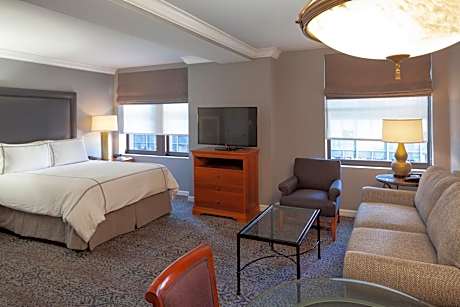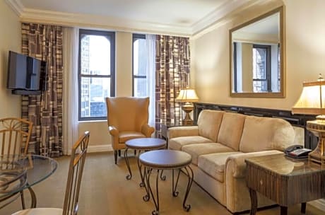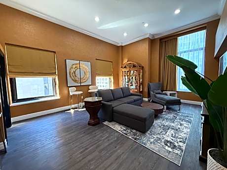 Each suite at The Manhattan Club is a testament to modern style and convenience, featuring a flat-screen TV, marble bathroom, and well-equipped kitchenette. The attention to detail extends to every feature, ensuring a stay that combines the comforts of home with the convenience of hotel living. For relaxation or networking, the private club lounge offers a serene environment that transitions from a welcoming breakfast spot to a chic evening cocktail lounge.