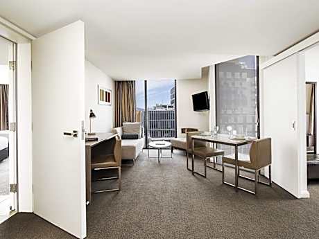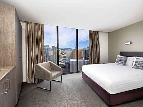 Located in Hobart CBD (Central Business District), Mantra Collins Hotel offers stylish rooms and apartments, guests enjoy discounted, secure parking located directly behind the hotel. All accommodations at Mantra Collins Hotel includes modern furnishings, and features in room controlled air conditioning, floor-to-ceiling double glazed windows and 55 inch TVs. Facilities include a complimentary guest laundry, guest lounge and business boardroom. Cafe Collins is a casual place to relax for breakfast seven days a week. Mantra Collins offers views over Hobart city and the Queen's Domain to Mount Wellington. It is 820 feet from the famous Hobart waterfront and Salamanca Place.