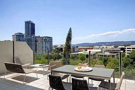 Mantra Hindmarsh Square enjoys a prestigious location in Adelaide city center. It offers recently refurbished, premier apartment style accommodations with modern interiors, cooking facilities, a gym, and a tour desk. This Mantra hotel on Hindmarsh Square also features a fully licensed restaurant and bar, a lounge bar and a street side cafe. Most accommodations units have a balcony or terrace, and some enjoy open views of the Adelaide Hills. Mantra Hindmarsh Square provides easy access to the city's best attractions, shopping and nightlife.