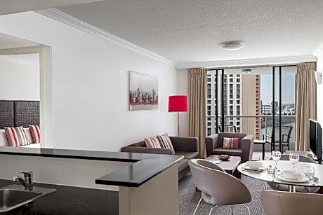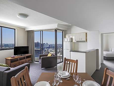 Mantra on Queen delivers modern, flexible and convenient accommodations in buzzing Brisbane city. Whether you’re visiting Brisbane for work or city sight-seeing, the spacious hotel rooms and apartments at Mantra on Queen have something on offer for every traveler! Aside from our accommodations, the onsite facilities are sure to keep every member of the family occupied including an outdoor heated pool and spa, gym, conference and event spaces and a tour desk to book those fun excursions. When you visit Mantra on Queen, the exciting city is just moments away with South Bank, Fortitude Valley and Howard Smith Wharves just a short walk or drive away. Make your stay in Brisbane unique to you and stay your way at Mantra on Queen.