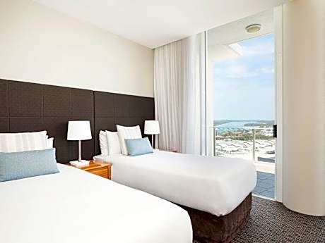 At the tip of the Gold Coast lies Mantra Twin Towns – a fantastic spot to stay close to Coolangatta's main attractions. This place is your gateway to Greenmount beach and Rainbow Bay, where the Quicksilver Roxy Pro happens every year. A relaxed walk along Marine Parade offers stunning sea views and a refreshing dip in the ocean. Entertainment? Just a stroll through the covered walkway leads you to restaurants, bars, and the vibrant Twin Towns Services Club. This Coolangatta hotel isn't just a place to stay; it's your entry pass to the Gold Coast's finest. Surf clubs, activities, and onsite amenities like a fitness center, mini-golf, games room, tennis courts, swimming pools (outdoor and indoor) await you! Enjoy comfortable rooms or apartments equipped with relaxed furniture, modern amenities and plush king bedding. Whatever the reason for you visit, we are sure you’ll kick back and have a go at Mantra Twin Towns.