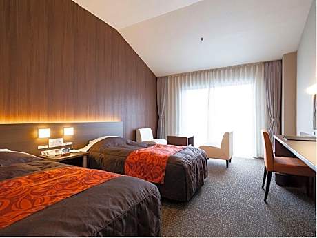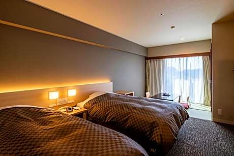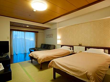 The twin room features a shared bathroom, air conditioning, a tea and coffee maker, as well as a seating area with a flat-screen TV. The twin room provides a safe deposit box, yukata, heating and a TV. The unit offers 2 beds.