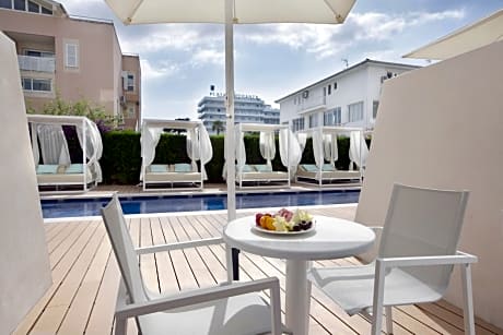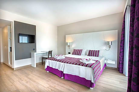 Just 492 feet from the spectacular beaches of Alcudia, this hotel features an outdoor pool where you can enjoy a cocktail in the shade of the gardens’ palm trees. This 4 star hotel offers a buffet restaurant, snack bar and day and night entertainment for all our guests. The area is ideal to go shopping, dining out or having a drink. Guests will find a variety of restaurants, bars and shops. The fully equipped suites and junior suites have air conditioning and a balcony. They also include satellite TV and a bathroom with a shower. The nearby nature reserve of L'Albufera Lake offers a peaceful haven of lush natural beauty for you to explore and enjoy. In August, the hotel requires a minimum stay of 5 nights.
