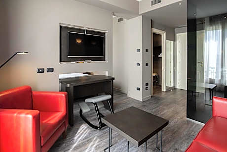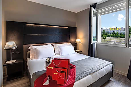 Set directly in front of Ferrari's Wind Tunnel, Maranello Palace offers modern and elegant rooms, suites and apartments, just one mile from the city center. Maranello Palace has extensive facilities and on site you will also find a congress center and a bar. A private garage is also available. The area surrounding Maranello Palace is green and rooms are quiet, modern and spacious. Apartments come fully furnished with a kitchen and a lounge area and as a guest here you enjoy all the hotel’s facilities. Driving courses can be followed nearby. Special tours to private car collectors, Balsamic vinegar and Grana cheese factories, as well as Lambrusco wine cellars can be arranged on request. The rooms are distributed in two different buildings, the hotel which is the main wing and the dependance which is 164 feet from the hotel and directly overlooks the Ferrari factory. The Junior Suites, apartments and family rooms are located in the dependance.