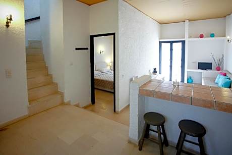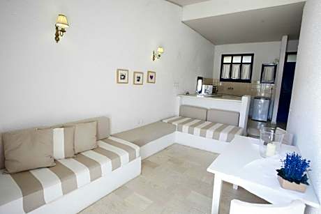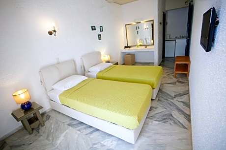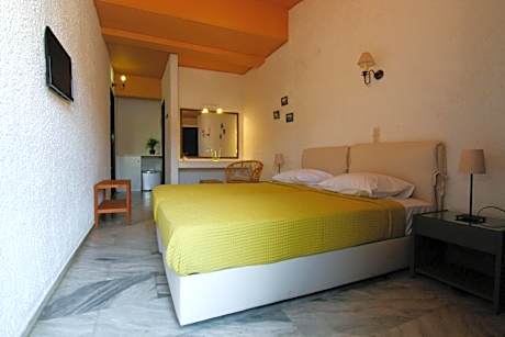 Beautifully situated with a wonderful view of the bay and port, this hotel is only 220 yards from Batsi’s main beach and 440 yards from the small beach of "Colona". This hotel offers privacy and seclusion, while at the same time conveniently located within a short walking distance of 660 yards from the center of the village. Enjoy your breakfast and light snacks in the bar area or poolside terrace, take a relaxing bathe in the pool and unwind under the soothing sun. Built in levels like an amphitheater, the complex is ideal for those seeking high standard vacations, offering the most beautiful view of the island from each one of the elegantly decorated, comfortable and contemporary apartments and from their verandas.
