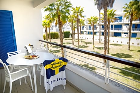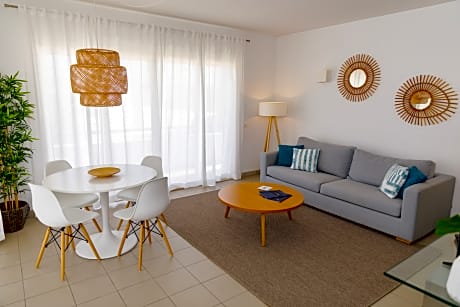 Situated in the centre of Marina de Lagos, the Marina Club I is the solution for those who need space. So whether you come with family or friends, its 18 two-bedroom apartments are the right choice. Generous living area apartments (from 85 to 90 square meters) decorated with nautical motif and that provide all the comfort. These apartments make the most of the surrounding scenery through their balconies with views of the Marina or swimming pool or palm tree garden.
