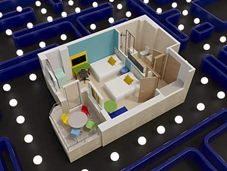 Located on the seafront of Oropesa del Mar, the hotel offers excellent sea views, Magic Games 4 offers themed rooms for gamers and family game enthusiasts The hotel includes a gym, solarium, and indoor and outdoor pool. Guests can relax on the poolside terrace, which features Balinese style beds. Consisting of of 225 air-conditioned, spacious rooms, including splendid Suites and Junior Suites, this modern and functional hotel offers excellent and exclusive views of the Mediterranean Sea. The hotel offers excellent cuisine in its buffet restaurant, specializing in Mediterranean cuisine. There are 5 play park areas for children and teenagers and a varied entertainment program. There are free evening shows at dinner. Free sports activities, dance classes and weekly workshops.