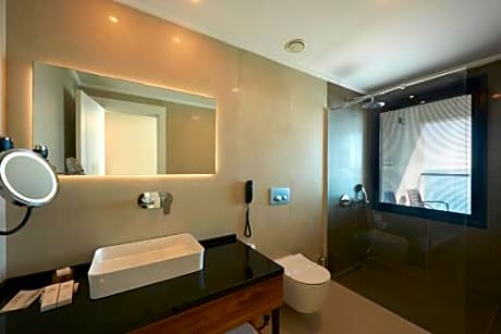 This family room has a balcony, tea/coffee maker and soundproofing.