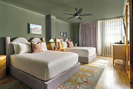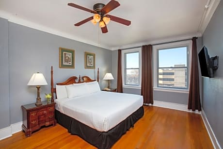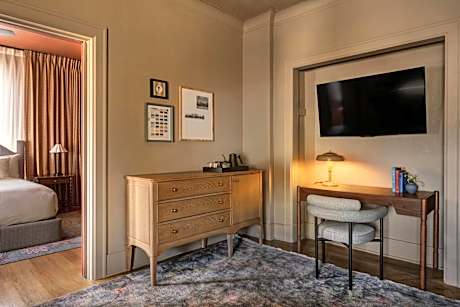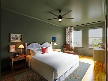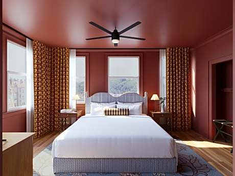 Each spacious room at the Marqueen Hotel radiates a welcoming ambiance with hardwood floors and period furnishings, ensuring comfort and a touch of nostalgia. Despite the hotel's historical character, modern conveniences like cable TV and room service, including bottle service, are readily available to enhance your experience.