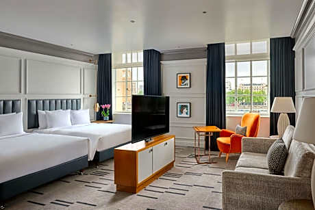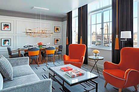 With fantastic views of Big Ben and the River Thames, this historic 5-star Marriott hotel features a swimming pool. Its spacious rooms include luxurious bathrobes and Egyptian cotton sheets. Guests get free Wi-Fi in the public areas. Each of the elegant rooms at the Marriott London County Hall offers a marble bathroom, slippers, and an LCD TV with satellite channels. Guests can relax in luxury bedding, and some rooms have beautiful river views. Located in central London, the hotel is only a 5 minute walk from Westminster Station and a 10 minute walk to Waterloo Station. Buckingham Palace can be reached in less than 25 minutes on foot and both Westminster Abbey and St James Park are a 15-minute walk away. County Hall offers a 25-yard indoor swimming pool and gym Overlooking the River Thames, Gillrays Steakhouse & Bar offers a selection of steaks and English traditional food, made of locally sourced ingredients.