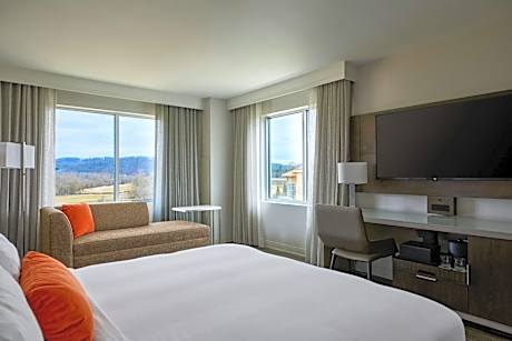 This hotel is 25 minutes from Tri-Cities Regional Airport and downtown Johnson City, Tennessee. It features an on-site restaurant, indoor pool and hot tub. A shuttle to the airport is available. MeadowView Marriott Conference Resort and Convention Center guest rooms include a flat-screen TV, refrigerator and coffee maker. They are furnished with a work table and seating area. A hairdryer and ironing facilities are also provided. The facilities of this Kingsport hotel include a gym and business center. Safety deposit boxes, laundry services and concierge services are available. The Bays Mountain Park and Planetarium is 20 minutes from MeadowView Marriott Conference Resort and Convention Center.