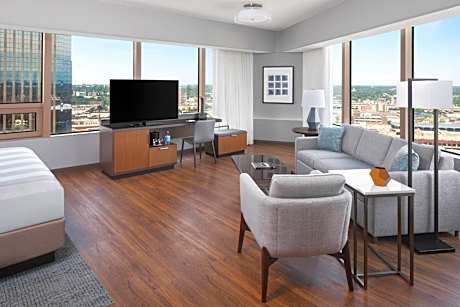 Featuring panoramic views of the city, this Minneapolis hotel is just 7 minutes’ walk from Target Field, home of baseball’s Minnesota Twins. There is an on-site restaurant and bar. A flat-screen cable TV and an iPod docking station are included in every room at Minneapolis Marriott City Center. Coffee-making facilities and free bathroom amenities are also provided. Aurora is located on site and serves American cuisine for breakfast, lunch, and dinner. A continental breakfast is available for an additional charge. A fitness center and launderette facilities are provided at City Center Minneapolis Marriott. A gift shop is also featured at this hotel. Target Center and Nicollet Mall are all within 5 mi of this hotel. The Mall of America can be reached in 10 minutes’ drive.