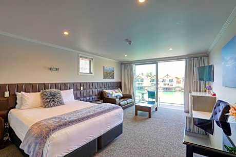 Marsden Lake Resort Central Otago offers villa and studio accommodations in Central Otago, on the edge of Lake Dunstan. Guests can enjoy the onsite bar and restaurant, open for breakfast, lunch and dinner daily. This resort is a 45-minute drive from Queenstown and a 40-minute drive from Wanaka. The accommodations is located on a picturesque marina connected to Lake Dunstan. Each unit is modern and spacious. Guests bringing their boats have direct access to the lake. There is free parking available. The Moorings Restaurant and Bar offers sophisticated casual dining with spectacular lake and mountain views. Barista coffee, pizza and bar snacks are also available.