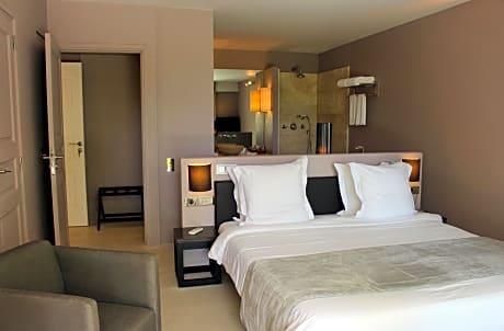 This suite is made up of 1 bedroom with an open-plan bathroom and a separate lounge. Both rooms include a west-facing terrace.