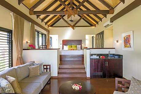 Matamanoa Island offers a secluded adults-only retreat in the stunning Mamanuca Islands. You can relax in the infinity-edge pool or enjoy the sunset views with a cocktail at the bar. Guests enjoy free continental breakfast. This intimate resort offers an array of leisure activities including tennis, cultural experiences, and snorkeling the pristine coral reefs. You can indulge in a massage from the treetop spa and wellness center, Senaki. Surrounded by turquoise water, the island features a volcanic cone that emerges from the sea. This sanctuary offers beautiful white sand beaches and lush vegetation. Matamanoa Island Resort is just 19 mi from Nadi International Airport. Day visitors, and children under 16 years, are not permitted at the resort, ensuring total relaxation. Each air-conditioned bungalow is of traditional Fijian design with sliding glass doors that open on to a patio overlooking the ocean. All garden view rooms include a refrigerator, private bathroom and small patio with daybed. Featuring ocean views, the restaurant serves international cuisine. Your breakfast consists of pastries, jam, cereal, pancakes and juices. A la Carte breakfast is available for an extra cost. Guests can dine by the pool or on the terrace overlooking the ocean.
