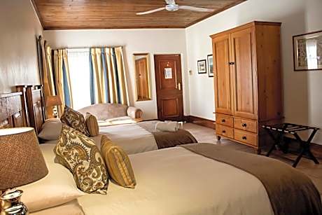 Located in Beaufort West, Matoppo Inn is a historic building, dating back to the 17th century. It features an extensive garden with outdoor pool and a dining room with fireplace. This individually decorated rooms at the guest house are equipped with air conditioning, a bar fridge, satellite TV, hair dryer and tea-and-coffee making facilities. Some of the rooms include antique furnishings and four-poster beds. Other facilities offered at the property include meeting facilities, a shared lounge and a children's playground. Pets are allowed on request. An array of activities can be enjoyed on site or in the surroundings, including golfing. The guest house is 3.7 mi from Karoo National Park.