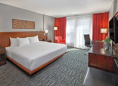 This modern Edmonton, Alberta hotel features on-site dining, a fitness center and a flat-screen satellite TV in every room. Conveniently located, it is just a 4-minute walk from Corona city railway station. iHome alarm clock radio and free Wi-Fi are provided in the spacious, modern rooms at Matrix Hotel. There is also a granite work desk and a seating area. Matrix Hotel offers an executive buffet breakfast. Guests can enjoy fine dining at Loft106 and cocktails. Starbucks is also on site. Parking is available for an extra fee. Citadel Theater and the Art Gallery of Alberta are 0.6 mi from this hotel. Edmonton City Center Airport is a 9-minute drive away.