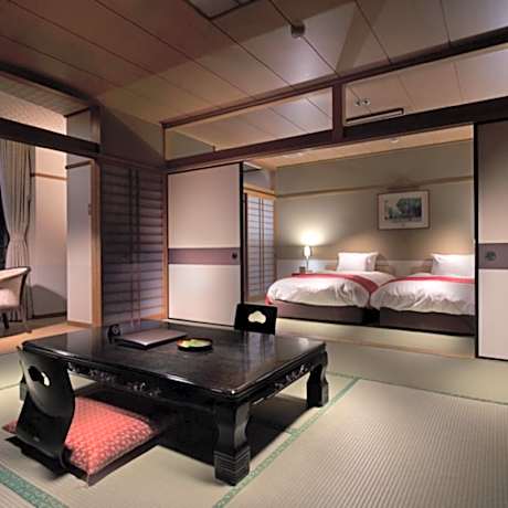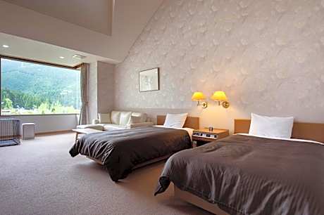 The spacious twin room offers air conditioning, tatami, as well as a private bathroom boasting a bath and a shower. The twin room features a tea and coffee maker, a wardrobe, a safe deposit box, a flat-screen TV, as well as mountain views. The unit has 2 beds and 4 futons.