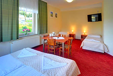 Matteo guest house is located in the center of the spa town of Duszniki Zdrój in the Kłodzko Valley. It offers accommodations with free Wi-Fi and 24-hour front desk. Matteo provides bright rooms with a private bathroom. Each carpeted room comes with a TV and a table with chairs. There is a restaurant at the guest house that serves traditional Polish and Italian meals. Breakfast buffet is also available. The location of Matteo provides a perfect starting point for exploring the Table Mountains, hiking or skiing. Duszniki Zdrój Train Station is 984 feet away and The Museum of papermaking is 2953 feet away.
