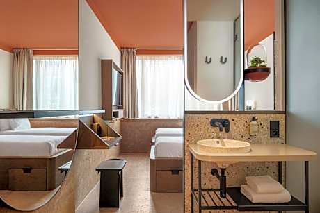 Maxhotel is a conceptual hotel, located in the heart of the center, at one of Brussels’ central avenues. WiFi, private bathroom facilities and air conditioning is available in all rooms. The rooms at Maxhotel feature a minimalistic design and luxury bedding. The reception is open 24 hours a day. Drinks, snacks and other things that can make the stay more pleasant, can be bought from the vending machines in the lounge area. The hotels does not offer restaurant facilities, but located in the center, there are many breakfast and dining options around the corner. Maxhotel is located 656 ft from the Rogier Metro Station and the City2 Shopping Mall. Guests can reach the Brussels North Station and Grand Place in 10 minutes on foot. Public Parking City 2 is only a160 m walk away.