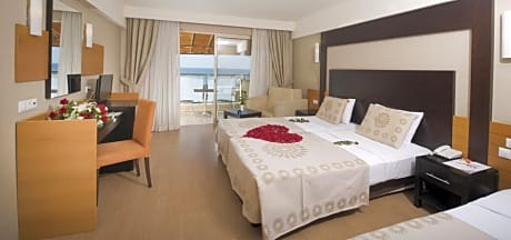 This hotel is located in the tourist centre of Konakli. Avsallar is around 5 km away, while it is approximately 15 km to Alanya. Antalya airport is 100 km away. Taxis and buses provide access to an array of nearby sights. Built in 2006, this air-conditioned beach hotel comprises a total of 7 floors with 470 rooms. Amongst the facilities count a foyer with a 24-hour reception desk, a safe and a currency exchange desk. In addition, conference facilities as well as a variety of drink and dining options are also available. Further facilities include room, laundry and ironing services. The air-conditioned rooms are all fully-equipped as standard including a satellite/ cable TV, a minibar and a balcony. Leisure options include an outdoor pool, a water park, a gym and spa treatments.