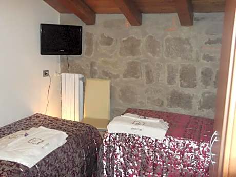 Rustic room with stone walls, TV and private bathroom with shower. Wi-Fi is free.