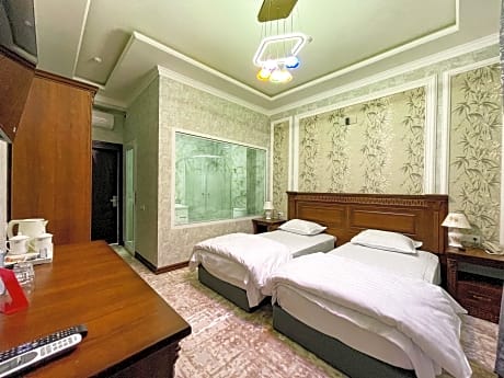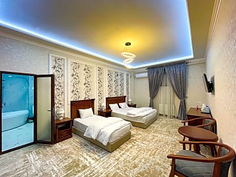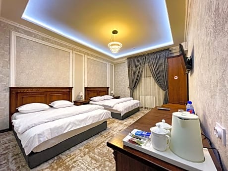 Medina Hotel Samarkand features free bikes, seasonal outdoor swimming pool, a fitness center and garden in Samarkand. Featuring room service, this property also welcomes guests with a restaurant and a terrace. The property provides a 24-hour front desk, airport transportation, a shared lounge and free WiFi. The hotel will provide guests with air-conditioned rooms offering a desk, an electric tea pot, a fridge, a minibar, a safety deposit box, a flat-screen TV and a private bathroom with a shower. Guest rooms include a closet. Samarkand International Airport is 2.5 miles away.