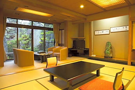 Experience an abundance of unparalleled facilities and features at Beautiful Jananese Garden Kagetsu. Share your photos and respond to emails at your convenience, thanks to the free Wi-Fi internet access offered by ryokan.Taxi, car hire and shuttle offerings at the ryokan simplify arranging your excursions, explorations, and additional activities in Yamanashi. Visitors can take advantage of complimentary parking directly at the ryokan. Reception services such as luggage storage and safety deposit boxes are available to accommodate your requirements.Room amenities like room service and daily housekeeping contribute to making a perfect selection for your stay. Smoking is limited to specified smoking zones.Each accommodation at Beautiful Jananese Garden Kagetsu is thoughtfully created and adorned to provide visitors with a comfortable, home-like atmosphere.In select rooms of the ryokan, guests can enjoy the advantage of having air conditioning available for their convenience.In select rooms, guests can enjoy a touch of amusement with the availability of television for their entertainment.Rest assured, in a few chosen rooms, the presence of a refrigerator can be found. Maintain your cleanliness and comfort using a hair dryer, toiletries and bathrobes available in select guest restrooms. Experience the delight of a fresh morning by savoring excellent coffee at the cafe situated within ryokan. Should you prefer not to venture out for a meal, the enticing culinary choices at ryokan are always available for your satisfaction. Experience an amazing evening effortlessly! Have an enjoyable night without venturing beyond the premises at karaoke rooms and bar. Throughout the day and evening, grab a bite to eat from ryokan's self-service vending machines whenever you please.Should you be particularly discerning in your dining choices, you will surely appreciate having access to the on-site shared kitchen provided at this location.Meisekinoyado Kagetsu provides a superb assortment of leisure amenities for guests to enjoy. Unwind after a long day by stopping by massage, steam room, spa and sauna to rejuvenate your senses.Each day at ryokan, immerse yourself in the invigorating waters of the pool, perfect for a rejuvenating plunge or a series of revitalizing laps.