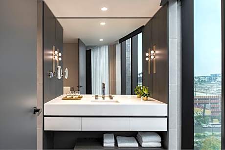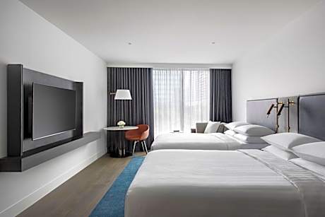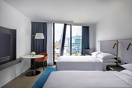Melbourne Marriott Hotel Docklands has an outdoor swimming pool, fitness center, a restaurant and bar in Melbourne. Among the facilities at this property are a concierge service and a tour desk, along with free WiFi throughout the property. The property has room service, a 24-hour front desk and currency exchange for guests. The hotel will provide guests with air-conditioned rooms with a closet, an electric tea pot, a fridge, a minibar, a safety deposit box, a flat-screen TV and a private bathroom with a shower. At Melbourne Marriott Hotel Docklands all rooms have a seating area. Guests at the accommodation can enjoy a buffet or a gluten-free breakfast. Marvel Stadium is a 11-minute walk from Melbourne Marriott Hotel Docklands, while Southern Cross Station is 1.2 miles from the property. Essendon Fields Airport is 6.8 miles away.
