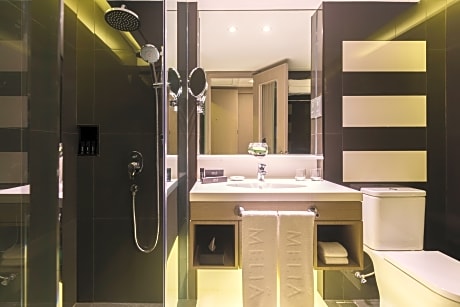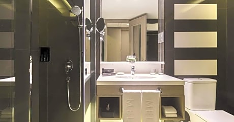 Featuring city view, this modern air-conditioned room is located on the top floor. The bathroom includes a bathtub and rain shower.