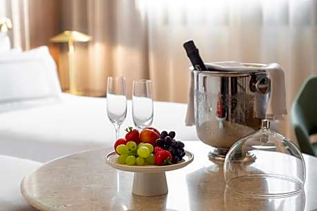 - Spacious rooms with flat-screen TV, mini-bar, and safe