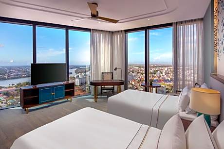 Experience an abundance of unparalleled facilities and features at Melia Vinpearl Hue.Maintain seamless communication using the complimentary Wi-Fi at hotel. Effortlessly arrange transportation to and from the airport using the hotel's airport transfer services. Discovering Hue becomes even more accessible through the taxi and shuttle amenities provided at the hotel. Guests can avail parking facilities at the hotel. During your stay at this fantastic hotel, the attentive front desk personnel can provide you with a range of amenities such as concierge service and safety deposit boxes. Obtaining passes for the town's top entertainments becomes effortless with hotel's ticket service. At the hotel, utilize the on-site dry cleaning service and laundry service to maintain your beloved travel attire fresh, allowing you to bring fewer clothes.Craving relaxation? Make the most of your stay at the Melia Vinpearl Hue with convenient amenities like room service and daily housekeeping at your disposal.Kindly note that smoking is prohibited in the hotel to ensure fresher air for all visitors. For visitors wishing to smoke, designated smoking zones can be found. At Melia Vinpearl Hue, every guestroom is provided with convenient amenities and fittings to ensure a comfortable stay. Enhance your experience at hotel with the knowledge that certain rooms are equipped with linen service and blackout curtains for your convenience. A few accommodations within Melia Vinpearl Hue offer unique design elements such as a separate living room. Certain rooms offer in-room amusement features such as the television for your enjoyment.In select rooms within the hotel, a refrigerator, a coffee or tea maker, instant coffee, instant tea and mini bar is available to cater to your requirements when desired.It is worth noting that certain guest bathrooms feature a hair dryer, toiletries and bathrobes for your convenience.Be sure to stop by the elegant executive lounge where you can experience the lavish amenities and ambiance. Begin your day with a scrumptious on-site breakfast available each morning at Melia Vinpearl Hue. Begin your day feeling refreshed and invigorated as you enjoy a delightful cup of quality coffee available at the cafe situated within the hotel.At the hotel, an assortment of easily accessible and delicious meal choices are available to satisfy your appetite whenever it strikes. Enjoy an entertaining evening with your fellow travelers at the hotel's bar.At the hotel, discerning guests can also enjoy on-site culinary facilities like shared kitchen tailored to their preferences.During your stay at hotel, an array of engaging activities and amenities guarantees a delightful experience.Conclude your holiday perfectly with a visit to massage, hot tub, salon, steam room, spa and sauna on your final days. Be sure to drop by the pool at hotel at least once during your stay.At Melia Vinpearl Hue, utmost care is taken to ensure guests' comfort. Relish your preferred beverage in your swimwear by the hotel's poolside bar.Discover the fitness amenities at hotel to maintain your health and strength during your getaway.