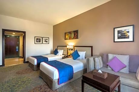 This 4-star boutique hotel is located next to King Fahad Library on Olaya Road in the prestigious business area of Riyadh. Faisaliah Tower can be reached by foot in 10 minute. It offers outward facing rooms with air-conditioning and free WiFi. All rooms feature a private bathroom, a work desk and a seating area. The hotel has 2 restaurants, Al Rehab and Café Inn. Al Rehab serves local and international cuisine for breakfast, lunch and dinner. Extensive international buffet is also served. Among other facilities and services at the hotel, guests will find a gym, car rental service, and free private parking.