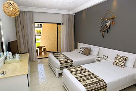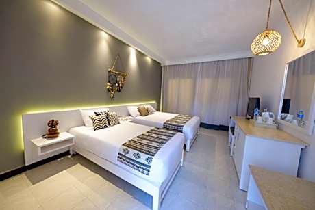 Experience the Egyptian hospitality with the boho-chic flair and an eclectic atmosphere combined with a variety of hotel facilities with a clubbing Resort concept. The private sandy beach offers relaxing hours directly at the Red Sea. All 368 rooms come along with the same conveniences. The specially designed creative rooms combine a Bohemian style atmosphere with comfort for an enjoyable stay. All rooms have a bathroom with shower, satellite TV, telephone, mini-fridge and air-conditioning. Each room has a balcony or terrace. Experience tasteful meals and a wide selection of beverages in our restaurants and bars. Sample the wide choice with something to suit every taste. Guests can enjoy dinner buffets at the main dining restaurant Munchery or at 7 different a la carte restaurants. Experience with Meraki Resort a variety of locations with a different atmosphere provided by 6 bars to enjoy a nice cocktail at the end of a wonderful vacation day. A walking distance from Hurghada downtown, Meraki Resort offers a 1.6 mi beach with diving and snorkeling opportunities, pools, 2 water slides, relaxing massages and a beauty shop.