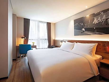 At Mercure Ambassador Seoul Hongdae, exceptional service and top-notch amenities create a memorable experience for guests.Complimentary internet access is available in the hotel to ensure you stay connected during your visit.Amenities at taxi offered by Mercure Ambassador Seoul Hongdae simplify the organization of your excursions, tourist activities, and other adventures in Seoul.For guests with their own vehicle, parking facilities are provided.Continuously receive the support you require through front desk amenities such as luggage storage and safety deposit boxes.Always look your best in your preferred attire with the laundromat, dry cleaning service and laundry service provided at Mercure Ambassador Seoul Hongdae. Desire to unwind? Make the most of your visit at Mercure Ambassador Seoul Hongdae with accessible amenities such as daily housekeeping. Due to health concerns, smoking is strictly prohibited within the entire premises of hotel.Accommodations come equipped with all the conveniences required for a restful night's slumber.A selection of rooms feature linen service, blackout curtains and air conditioning to ensure your comfort and convenience.A few accommodations at Mercure Ambassador Seoul Hongdae also include unique design elements like a balcony or terrace.A few chosen rooms are equipped with television and cable TV to ensure guest amusement.In certain rooms, the hotel offers visitors access to a refrigerator and mini bar. In the hotel, certain guest bathrooms come equipped with essential bathroom amenities, such as a hair dryer, toiletries and bathrobes, ensuring a comfortable stay for guests. A delightful breakfast is the perfect way to begin your day, and at Mercure Ambassador Seoul Hongdae, you can always indulge in a scrumptious meal on-site.Allow your journey to be free from the pangs of hunger! On-site eateries offer delicious and accessible meal choices. An evening spent at hotel's bar can offer as much enjoyment as venturing out with your fellow travelers.At Mercure Ambassador Seoul Hongdae, guests can take pleasure in the delightful recreational amenities provided for their entertainment.At the hotel fitness center, you have the option to engage in your daily exercise routine or simply alleviate your jet lag by breaking a sweat.