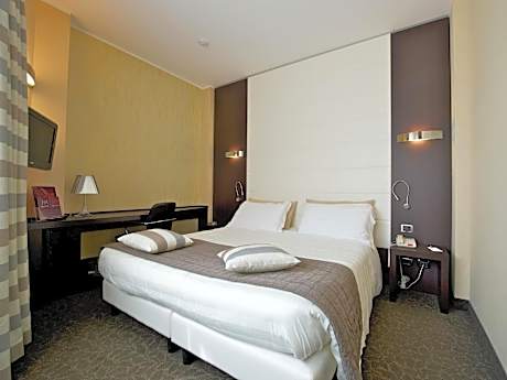 Mercure Bergamo Aeroporto offers modern accommodations and free parking in Stezzano. It is just off the A4 motorway and a 15-minute drive from Bergamo Orio Al Serio Airport. Wi-Fi is free throughout, and an internet point is available in the hotel’s lobby. Rooms at Mercure Bergamo are air conditioned and soundproofed, with modern décor. They all feature a flat-screen TV with satellite channels, a mini-bar and a work desk. A sweet and savory breakfast buffet is available daily. At the bar you can enjoy snacks and cocktails, while the cafeteria serves fresh food. The restaurant Cascina San Antonio specializes in local dishes. The Mercure is 3.1 mi away from Bergamo center and a 30 minute-drive from Milan. Staff are available 24 hours a day and can recommend sights in the surroundings.