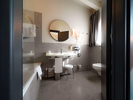 Offering air-conditioned rooms with free Wi-Fi and an electric kettle, this 4-star hotel is 984 feet from Bergamo Train Station. It has excellent transport links to Orio al Serio Airport, Milan and the lakes. Mercure Bergamo Palazzo Dolci is an elegant historical building just 5 minutes' walk from Donizetti Theater. It has good bus links to the airport and Bergamo Old Town. In the lobby, you will find a computer with free internet access and printer. Decorated in light colors, rooms at Mercure Bergamo are modern and soundproofed. They offer a flat-screen TV and a mini-bar. Breakfast has a wide selection of sweet and savory food. These include fresh fruit, pastries, salami, eggs and gluten-free items. L'Accademia bar serves fine wines, appetizers and dinner on request, open during the evening. Guests of Palazzo Dolci enjoy discounted rates at partner restaurants nearby. The Gaetano Donizetti Theater is 1312 feet from the property. The Bergamo Alta historical center is a 10-minute drive away.