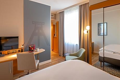 This centrally located hotel in Bochum offers modern rooms such as an international restaurant and a bar. The main railway station and the shopping district are both less than 656 feet away. All of the rooms at the Mercure Hotel Bochum City have a flat-screen TV with cable channels, a coffee machine and free WiFi. The Mercure Hotel Bochum City's TwinTower restaurant offers a daily breakfast buffet and international cuisine. The TwinTower bar serves a variety of drinks and snacks. Leisure facilities at the Mercure Hotel Bochum City include a fitness center. The Starlight Express musical is around 1.2 mi away from the Mercure Hotel Bochum City.