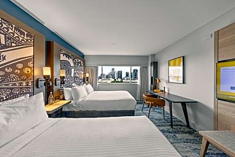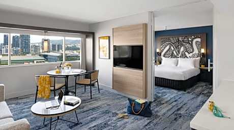 Each of the hotel’s 194 artfully designed premium guestrooms feature an abundance of natural light, plush, sustainable bedding, bright pops of signature voco yellow, hand-picked vibrant artworks, smart in-room technology, modern bathrooms and sweeping views over the city or river. Bathrooms have aerated shower heads and organic beauty inspired Antipodes amenities from Vanity Group. Guests can soak up those famous Queensland rays at the rooftop pool, work out in the 24-hour fitness center, or zip around the city on handcrafted bamboo bikes from Wyld Bikes. Awaken your senses and kick start your day at Zuma Restaurant, delivering à la carte and buffet style service. Business travelers are catered for with 1,200-sq-m of event space consisting of 11 meeting and function rooms including the 600-person Grand Chelsea Ballroom. Each conference space is named after one of Queensland’s National Parks. voco Brisbane City Center is 0.6 mi from the Brisbane Convention & Exhibition Center, and just 8 minutes’ walk from the popular Queen Street Mall.