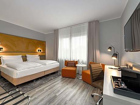 This 4-star hotel in Dortmund features modern rooms and free spa facilities. It is located on Friedensplatz in the city center, 656 feet from Stadtgarten Underground Station. The air-conditioned rooms of the Mercure Hotel Dortmund Centrum hotel include a flat-screen cable TV and a safe. Free WiFi access is also available. Guests can make free use of small fitness studio at the Mercure Hotel Dortmund Centrum. The Mercure Hotel Dortmund Centrum provides rich breakfast buffets in the mornings. International and regional dishes are served in the Brasserie restaurant with conservatory and summer terrace. The Mercure Hotel Dortmund Centrum's Fortune bar offers a range of cocktails, local beers and small snacks.