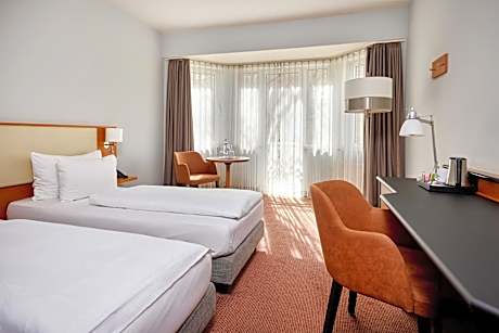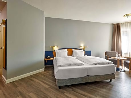 This Mercure hotel is located in Düsseldorf city center, just 984 feet from the main train station. It offers air-conditioned rooms, a bar and a restaurant serving German cuisine. All rooms at the Mercure Hotel Düsseldorf City Center are nonsmoking and have satellite TV, coffee/tea facilities and Wi-Fi internet access. The Mercure’s Quatre Saison restaurant features a terrace, and serves international and German food. The L'apero bar offers small snacks, fine wines and locally produced Altbier (beer). The famous Königsallee shopping district is just a 10-minute walk from the Mercure Düsseldorf. The nearby Hauptbahnhof Underground Station provides a link to the trade fair in less than 15 minutes.