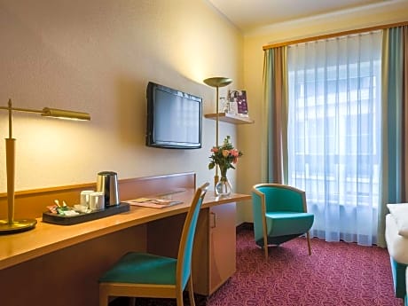 This 4-star hotel in the peaceful Spitalhof district of Ingolstadt offers rooms with free Wi-Fi hotspot, and free spa facilities. Ingolstadt city center is a 10-minute drive away. The Mercure Hotel Ingolstadt has rooms with a work desk, and a flat-screen TV with satellite channels and free Sky TV. The Mercure Ingolstadt's fitness centers includes a sauna, solarium, and infrared cabin. Varied buffet breakfasts are prepared at the Mercure. The Hotel Mercure Ingolstadt also offers parking spaces and great links with the A9 motorway.
