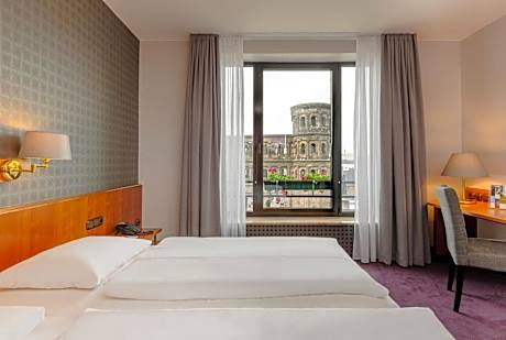 Located opposite the famous Porta Nigra Gate, this 4-star hotel in Trier offers air-conditioned rooms, Wi-Fi, and traditional food from the Rhineland-Palatinate region. Modern rooms with satellite TV are available at the Mercure Hotel Trier Porta Nigra. The bathrooms include a hairdryer and cosmetic mirror. Wi-Fi is available on request. The Mercure’s Porta restaurant enjoys great views of the Porta Nigra Gate. Guests can enjoy regional and international specialties here. Varied snacks are available at the Vis à Vis cocktail bar. The Spielbank Trier casino is also located on site. Underground parking is available at the Mercure. Trier Central Station is only 2625 feet away.