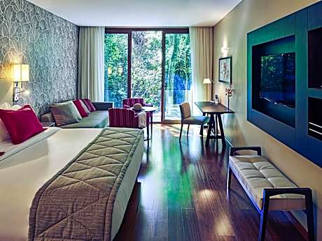 Located in the heart of the Iryapú Jungle, Mercure Iguazu Hotel Iru offers spacious and elegant room in Puerto Iguazú. This hotel features an outdoor swimming pool and free WiFi access in all areas. Decorated with an elegant style and classic details, rooms at Mercure Iguazu Hotel Iru are equipped with air conditioning, functional work desks and mini-bars. All room offer spacious bathrooms and some also include a seating area. At Mercure Iguazu Hotel Iru guests can work out in the fitness center or unwind in the property's spa facilities, including a sauna, hot tub and solarium. Relaxing massages are offered for an extra fee. A full breakfast is offered daily, including a wide array of hot and cold items. The hotel's restaurant serves delicious local and international cuisine with unique flavors. There is also an indoor bar and a poolside bar, serving drinks and snacks throughout the day. The hotel is 3.1 mi from downtown Puerto Iguazú and 12 mi from the uguazú Fall. Cataratas del Iguazu Airport is a 20-minute drive from the property. Between 04/13/2020 and 05/31/2020 the pool area will be disabled due to remodeling and expansion of the Pool Bar and Pool Deck. Works will also be carried out in a restaurant sector but these will not affect the regular operation.