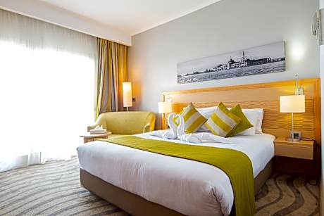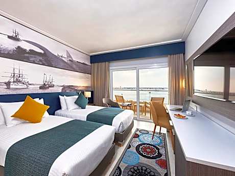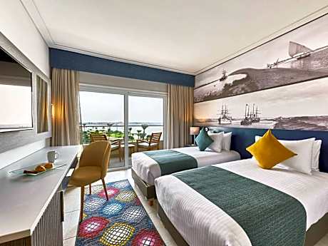 Located in a tranquil setting of greenery by the coast of Ismailia, this 4-star hotel has its own private beachfront by the lake. Mercure Forsan is secluded on a private island, near the lake shore, about 1.2 miles away from the city center. Many rooms have panoramic lake views, with pleasant balconies, where you can sit, relax and watch the ships go by. Mercure Forsan Island offers spacious accommodations with carpet floors, wide floor-to-ceiling windows, French beds and light, neutral interior colors giving you an authentic resort feel. Mercure Ismailia provides you with a large public area and lush gardens. Wireless internet is provided free of charge in the lobby area and the coverage extends into the restaurant, so you can enjoy your breakfast and read your local newspaper online or check e-mails.